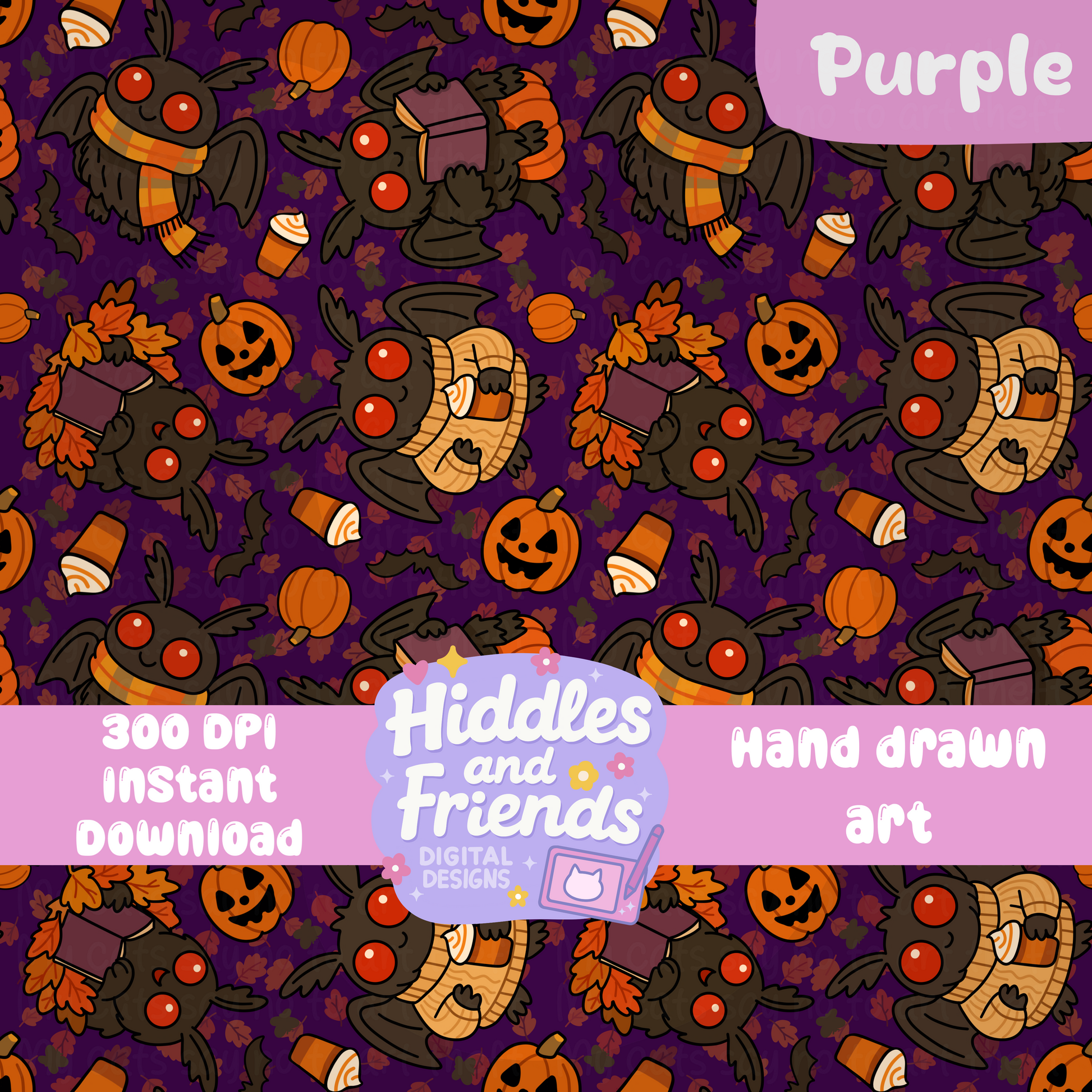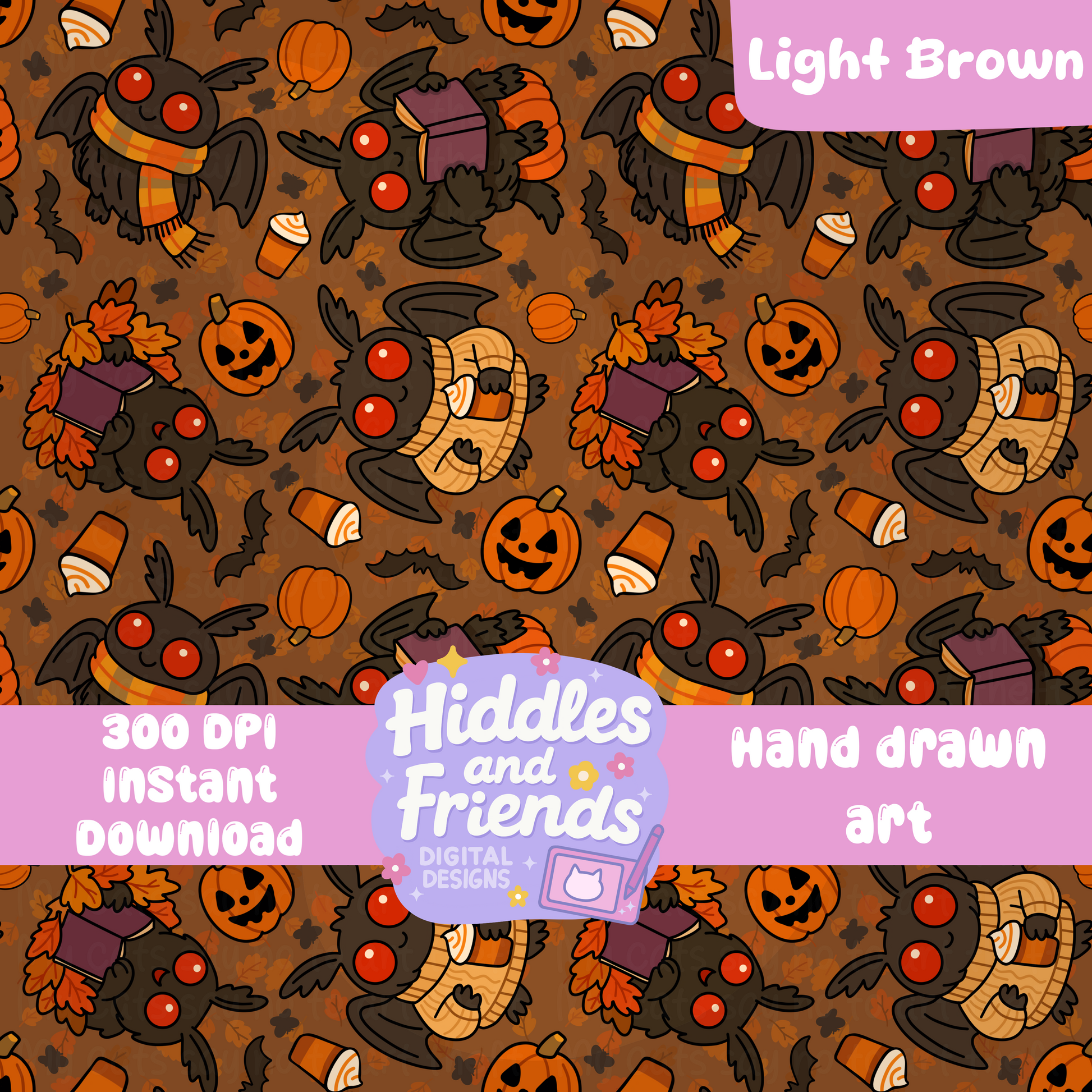 Cozy Halloween Mothman Seamless File – Fall Cryptid Pattern in 4 Colorways