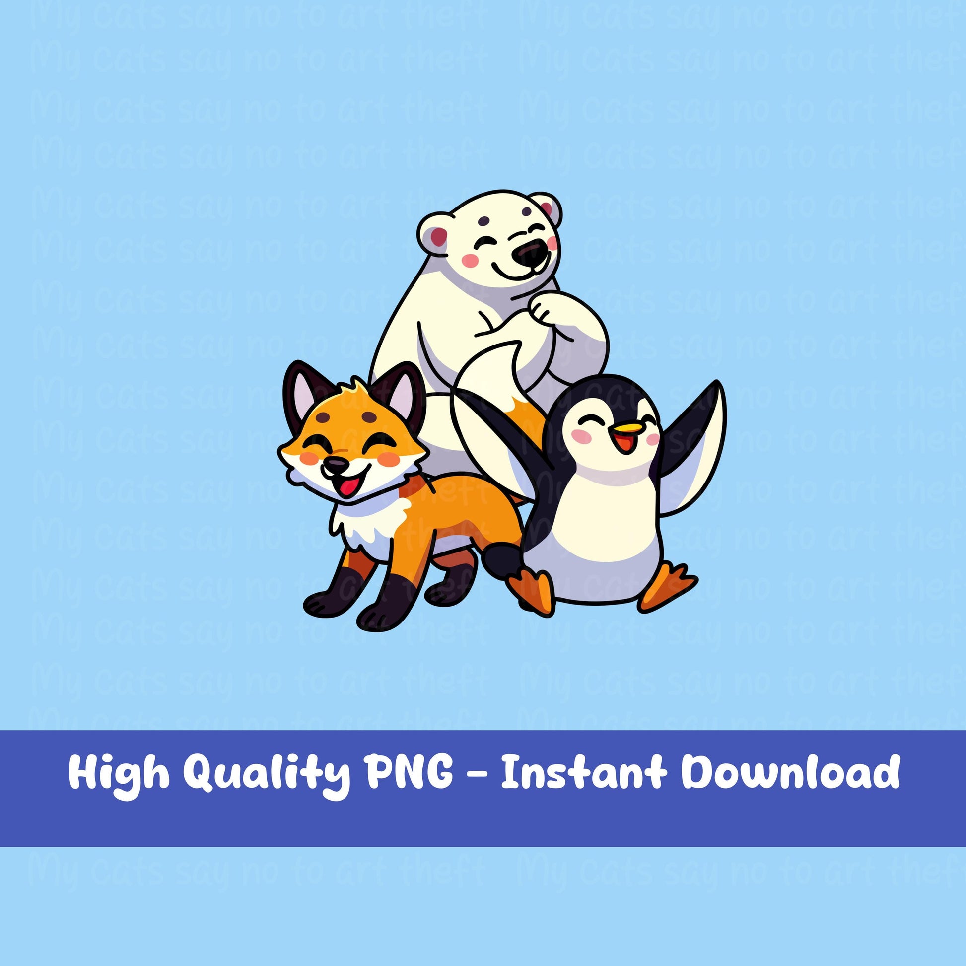 Bring Arctic charm to your projects with this adorable digital sticker featuring a playful polar bear, fox, and penguin! Perfect for digital planners, DIY stickers, sublimation, and more, this high-quality PNG file is instantly downloadable—no physical product included.