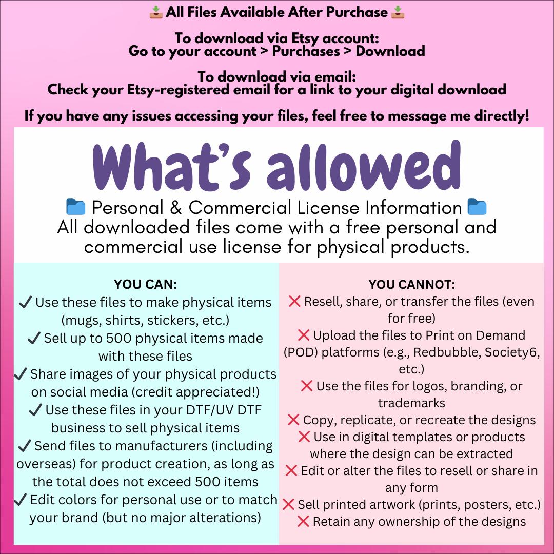 What’s Not Allowed: Please don’t redistribute, share, or resell these files, either as-is or in a modified form. Print-on-demand services are not permitted.