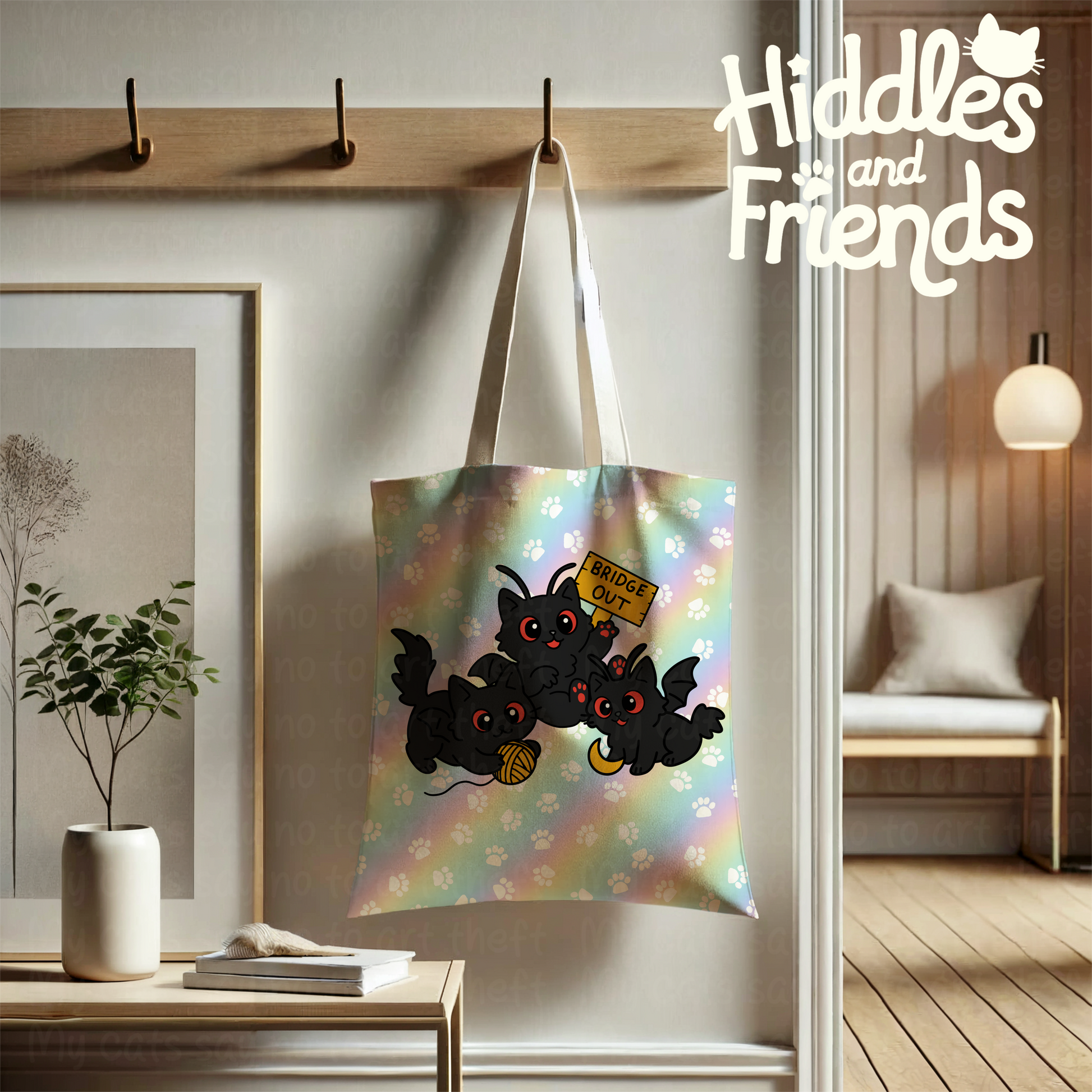 This cute digital sticker features three playful Mothcats — fluffy black cryptid kittens with red eyes, chasing yarn, carrying a moon, and holding a “Bridge Out” sign! Perfect for planners, crafts, and digital scrapbooking. Transparent PNG, high quality 300 DPI, instant download.
