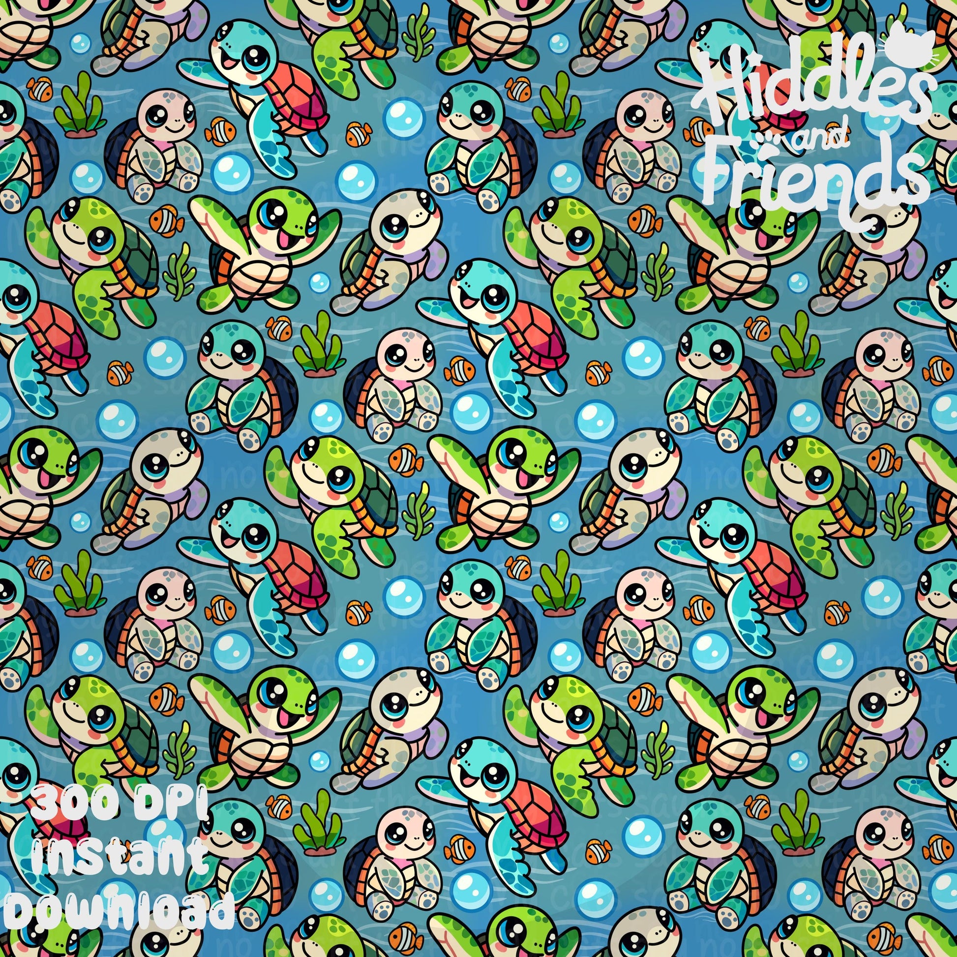 Dive into the ocean with this adorable seamless pattern featuring sea turtles, coral, seaweed, and tiny clownfish! This high-quality digital download is perfect for fabric, scrapbooking, wrapping paper, and other creative projects inspired by marine life.