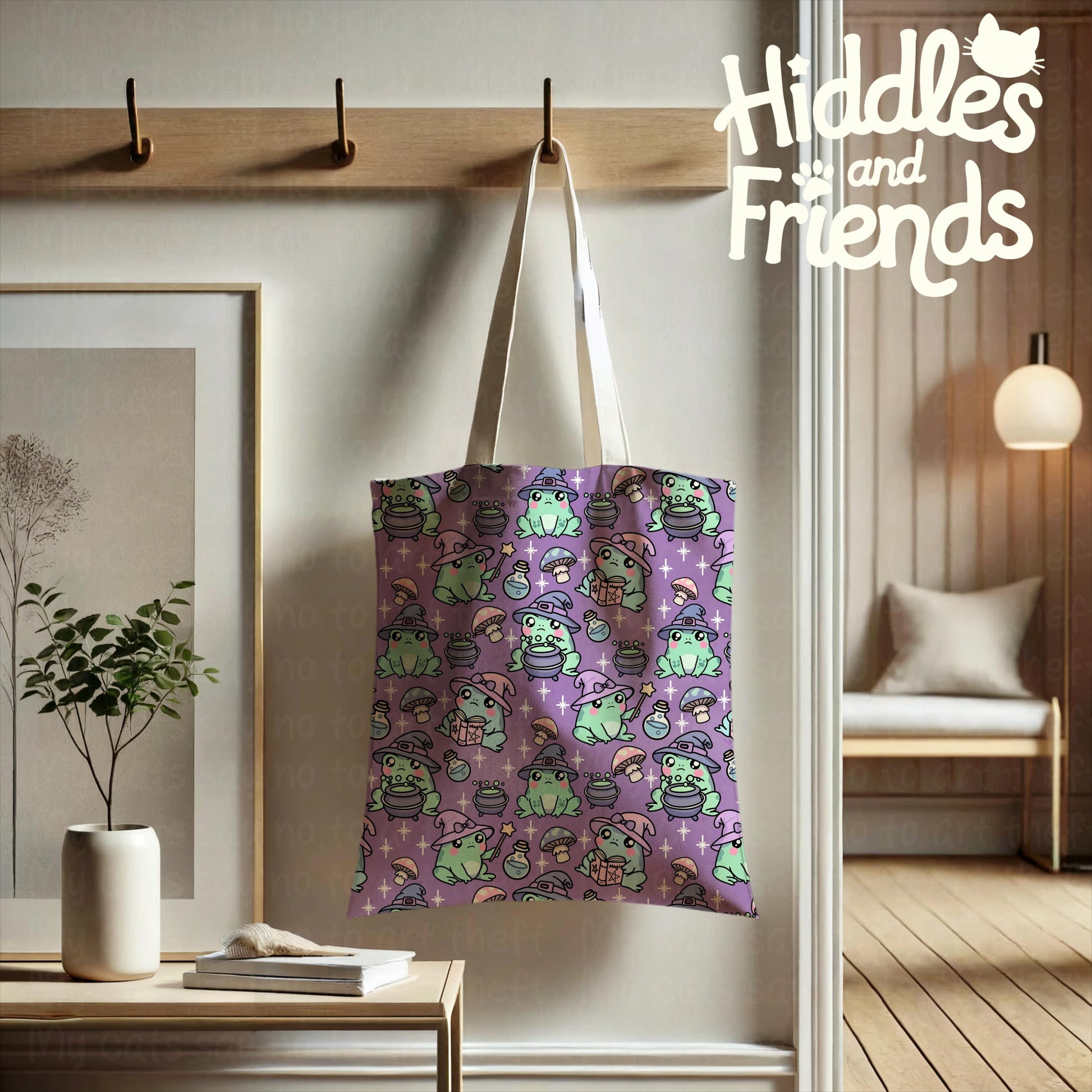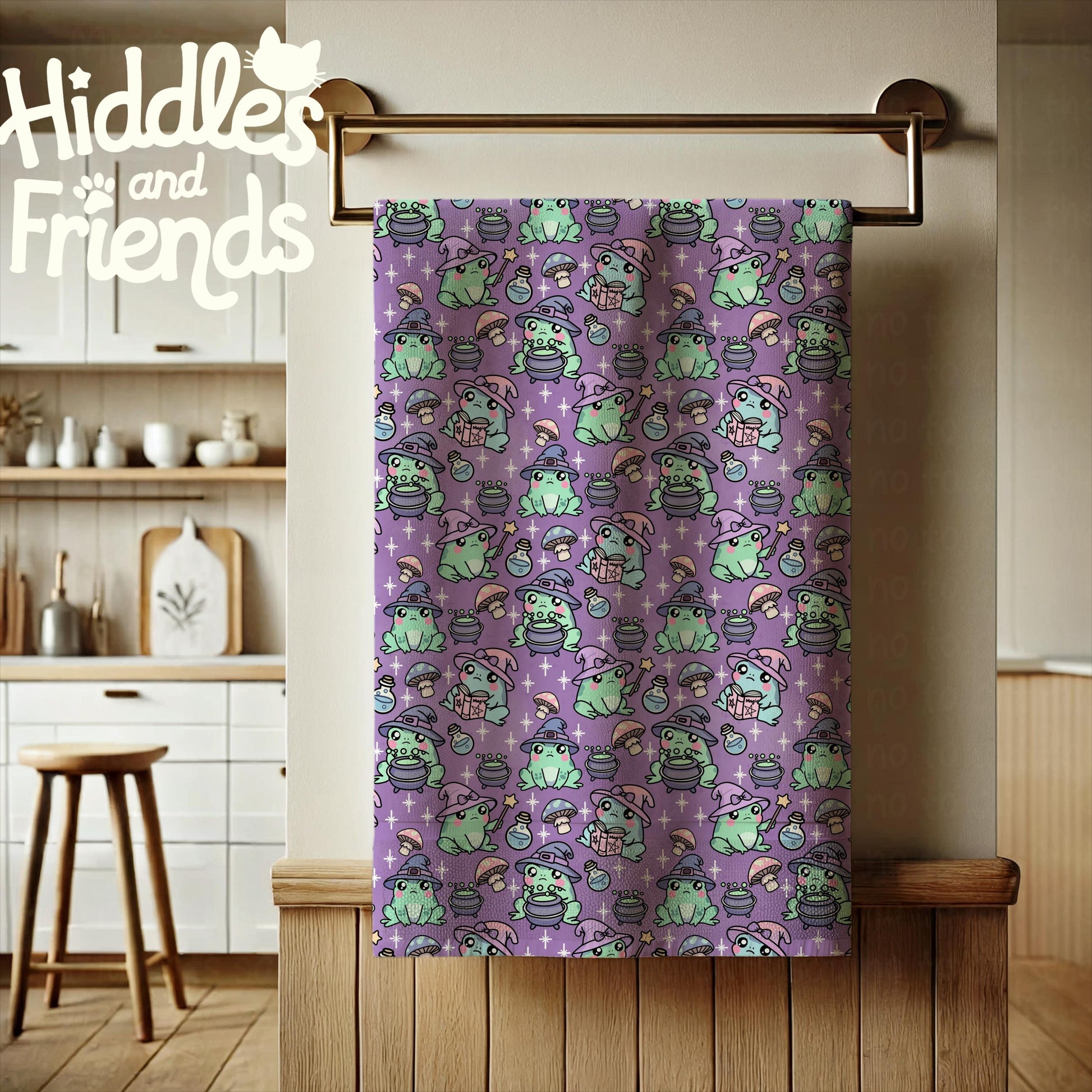 This adorable seamless pattern features magical frogs in witch hats, brewing potions, reading spell books, and surrounded by mushrooms, cauldrons, and sparkling stars. Perfect for fabric, scrapbooking, wrapping paper, and other creative projects! This digital file is high-quality 300 DPI and ready for instant download.