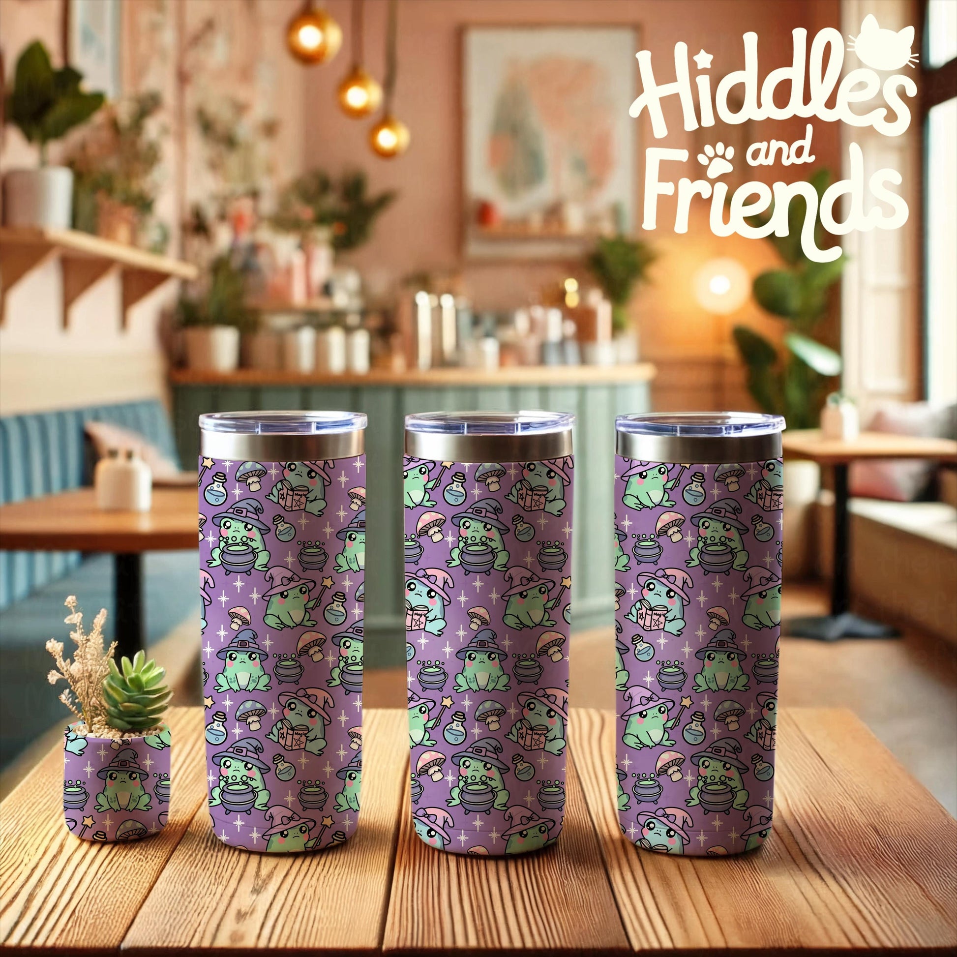 Cute Witchy Frog Seamless Pattern - Magical Frogs, Potions, Cauldrons & Mushrooms