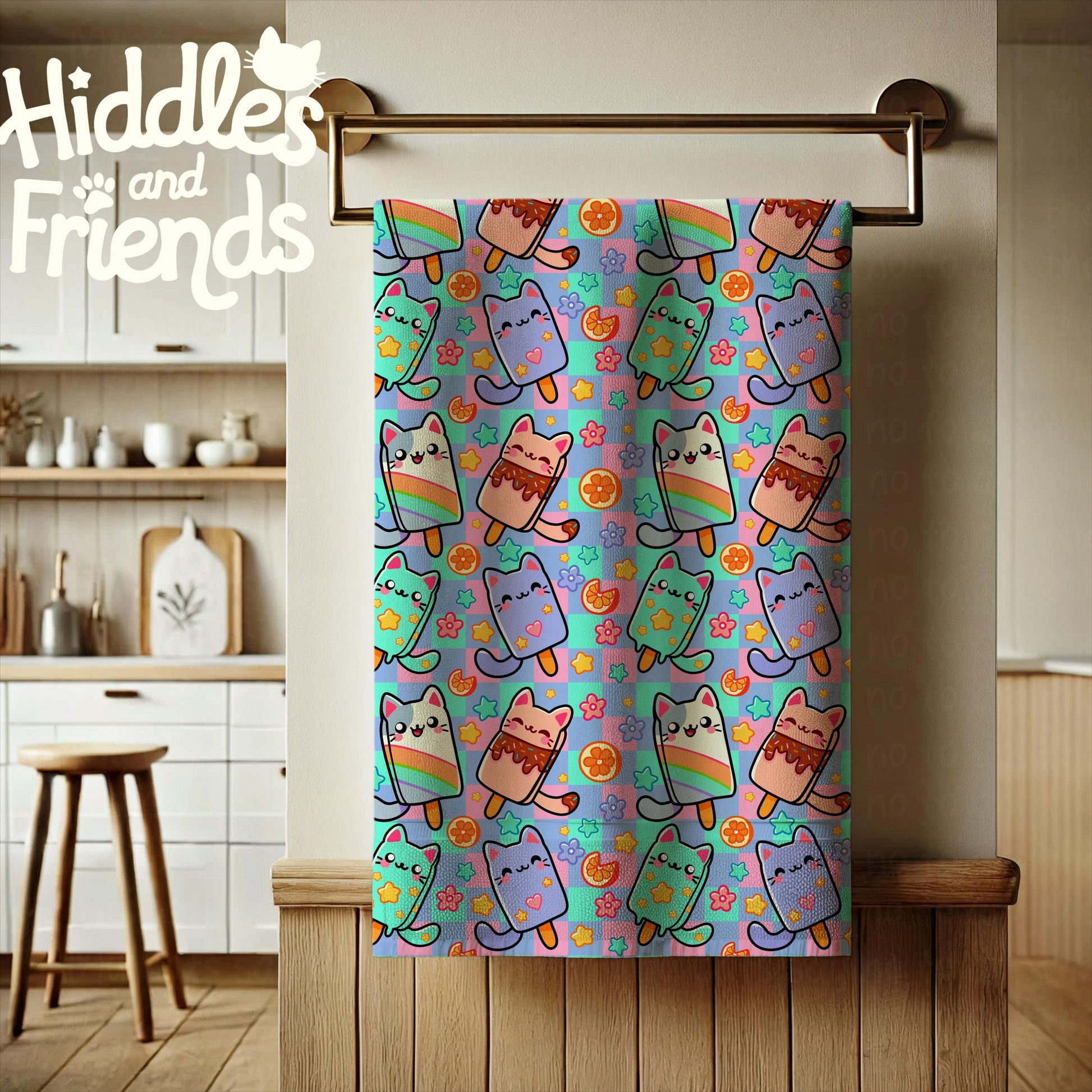 This adorable pastel seamless file features cute cat-shaped popsicles with rainbows, chocolate dips, hearts, and stars! With vibrant oranges, florals, and summery fun, it's perfect for fabric, digital paper, or crafts that need a dash of whimsy and sweetness. Instant download at 300 DPI.