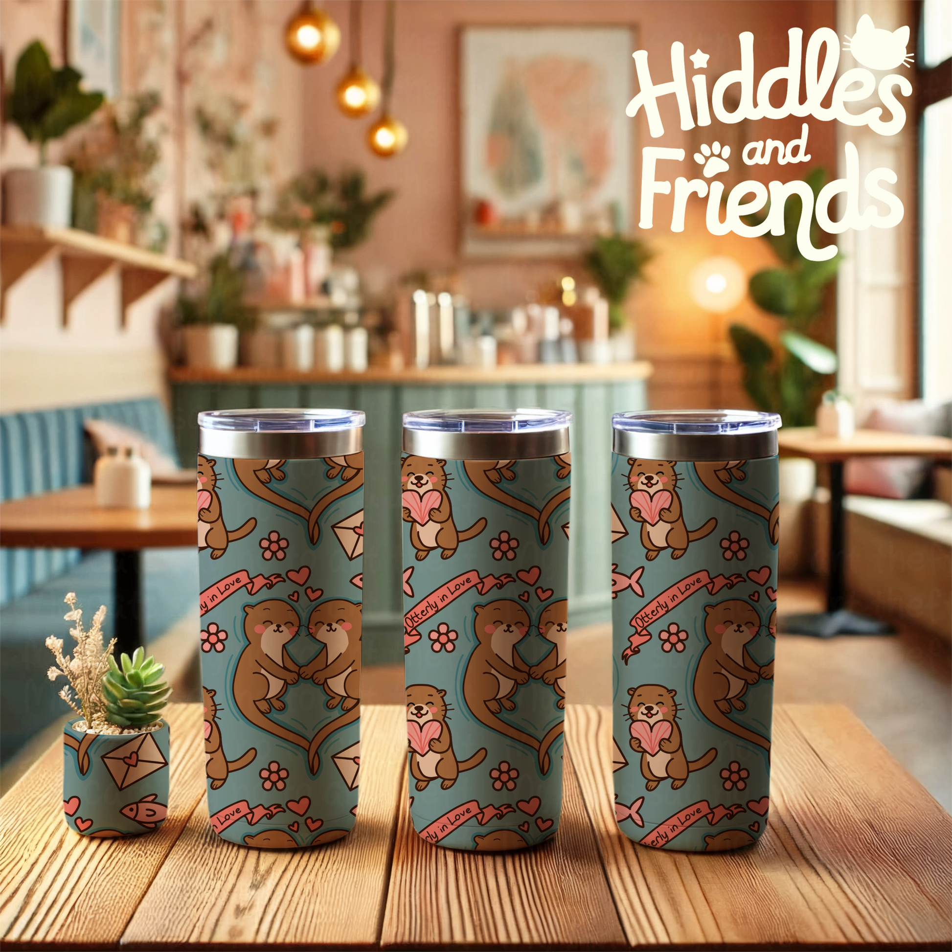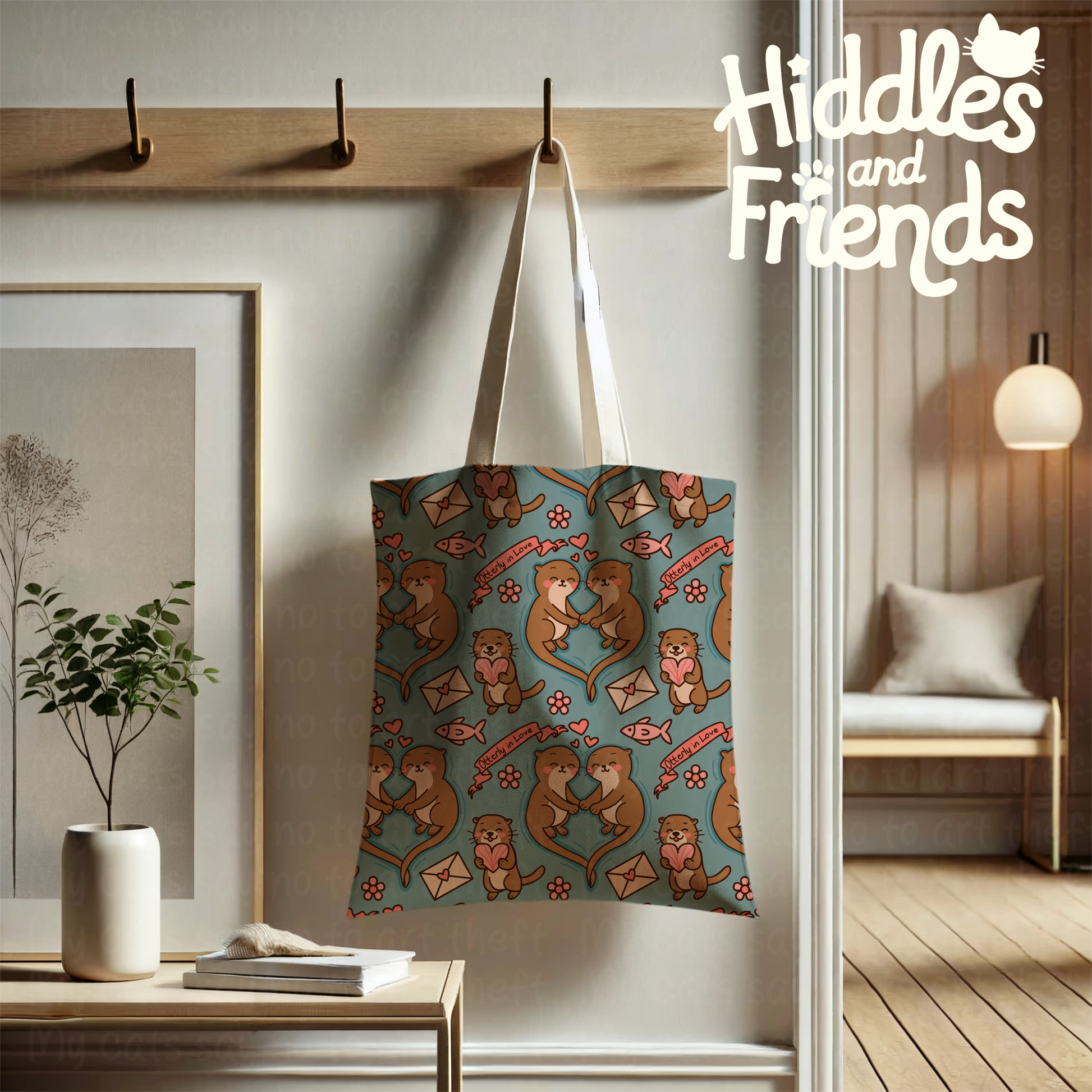 This adorable seamless pattern features two otters floating in love, forming heart shapes with their tails, surrounded by flowers, hearts, fish, and love letters. The playful “Otterly in Love” banner adds a romantic touch, perfect for Valentine’s Day, wedding designs, wrapping paper, and cute crafts. The warm brown otters pop beautifully against the soft teal background, making it ideal for any love-themed project.