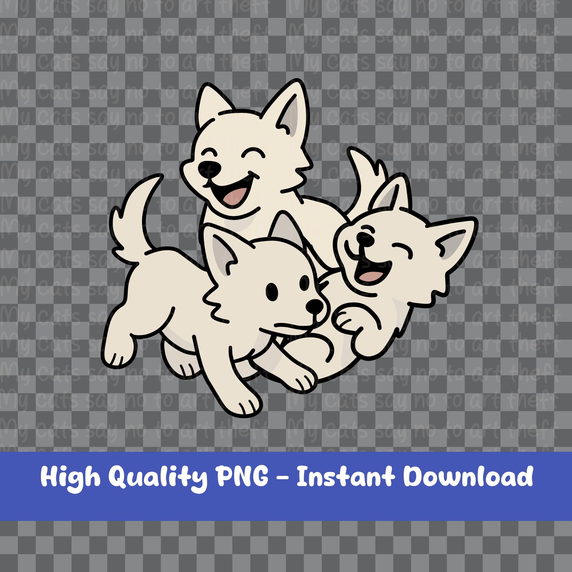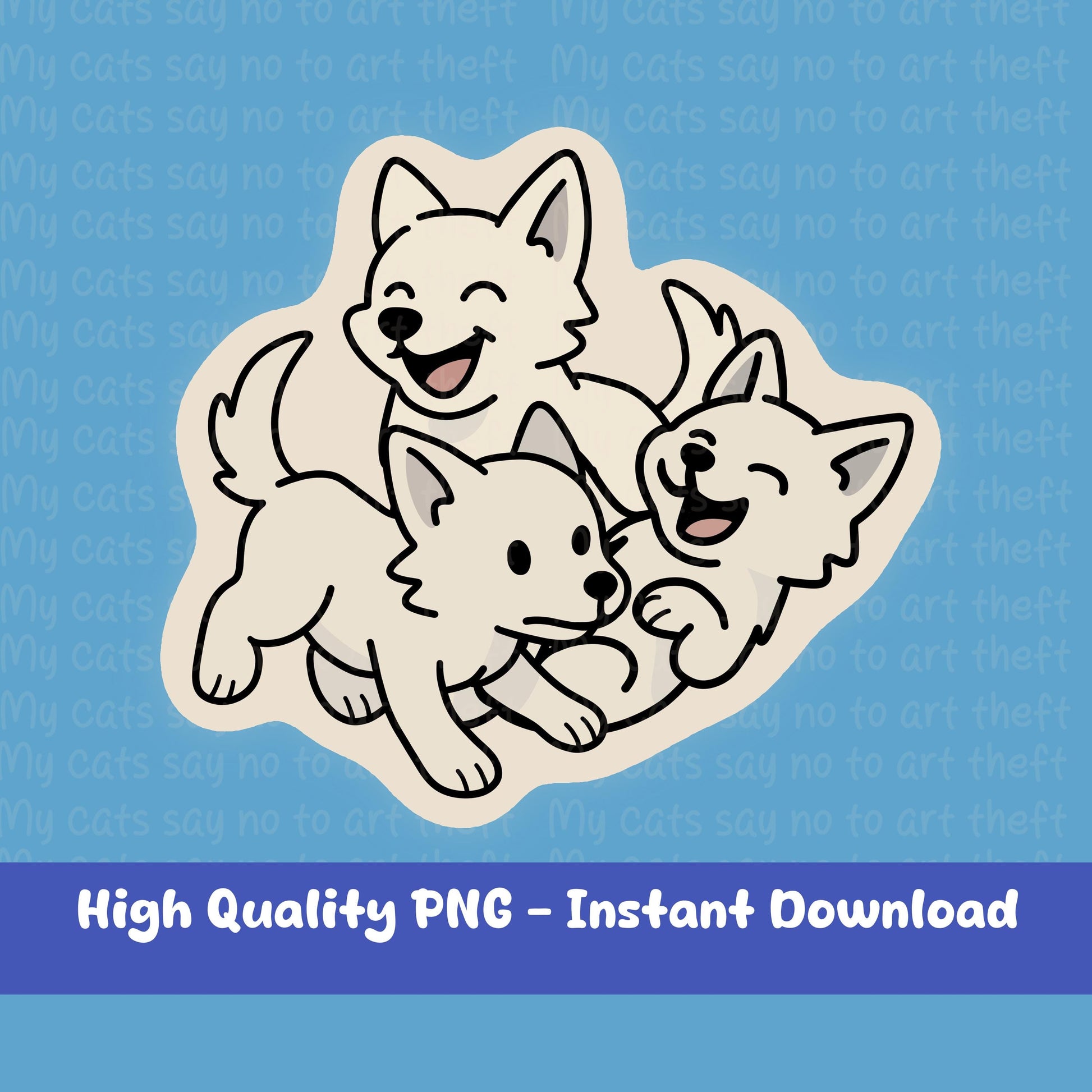 Playful Dire Wolf Pups – Cute White Wolf Digital Sticker Trio – High Quality PNG Instant Download for Planners, Journals, and Digital Use