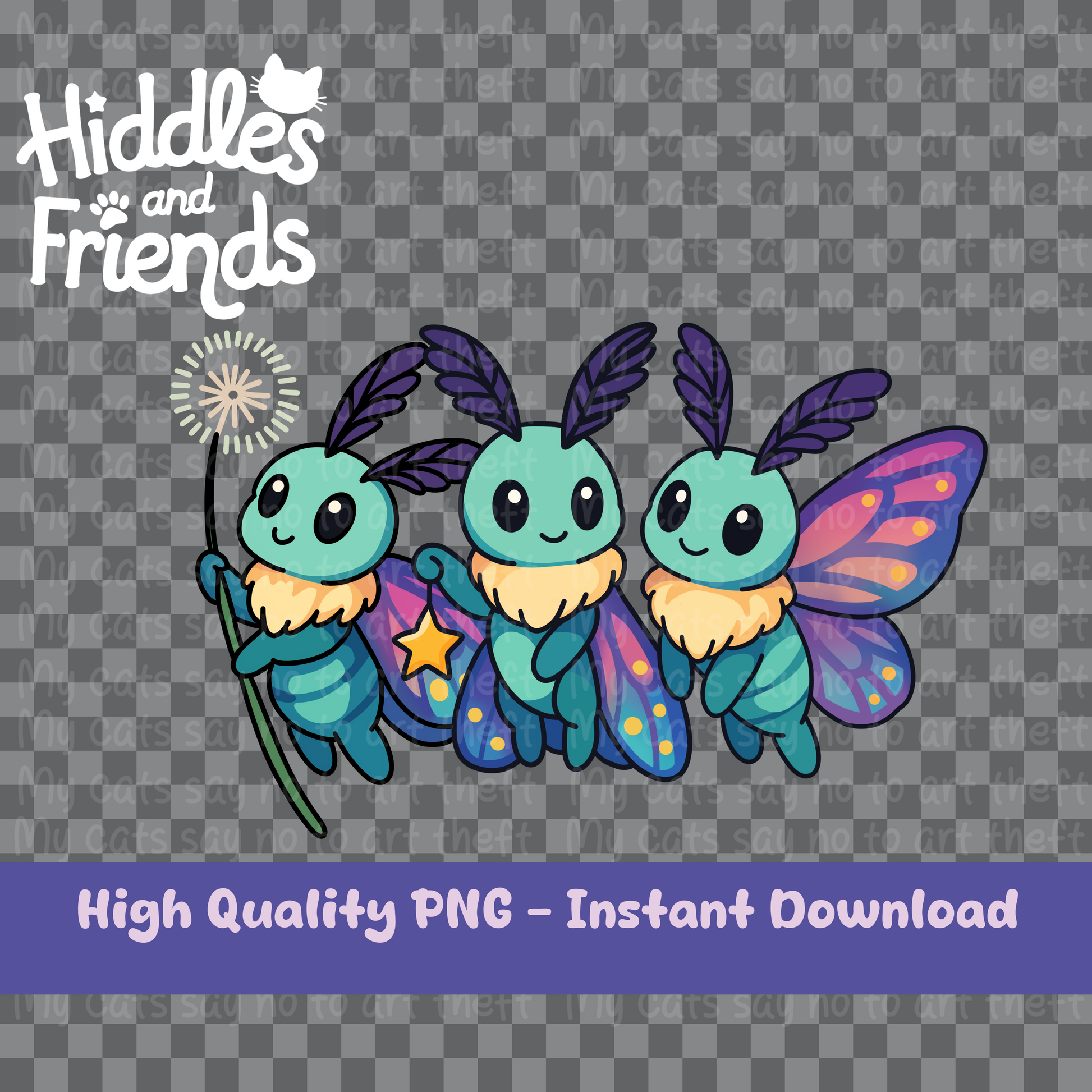These three adorable wish moths are bundled together in one high-res PNG! With soft pastel wings, magical accessories, and bold lines, they’re ready to brighten up your next sticker sheet, tumbler, or digital project.