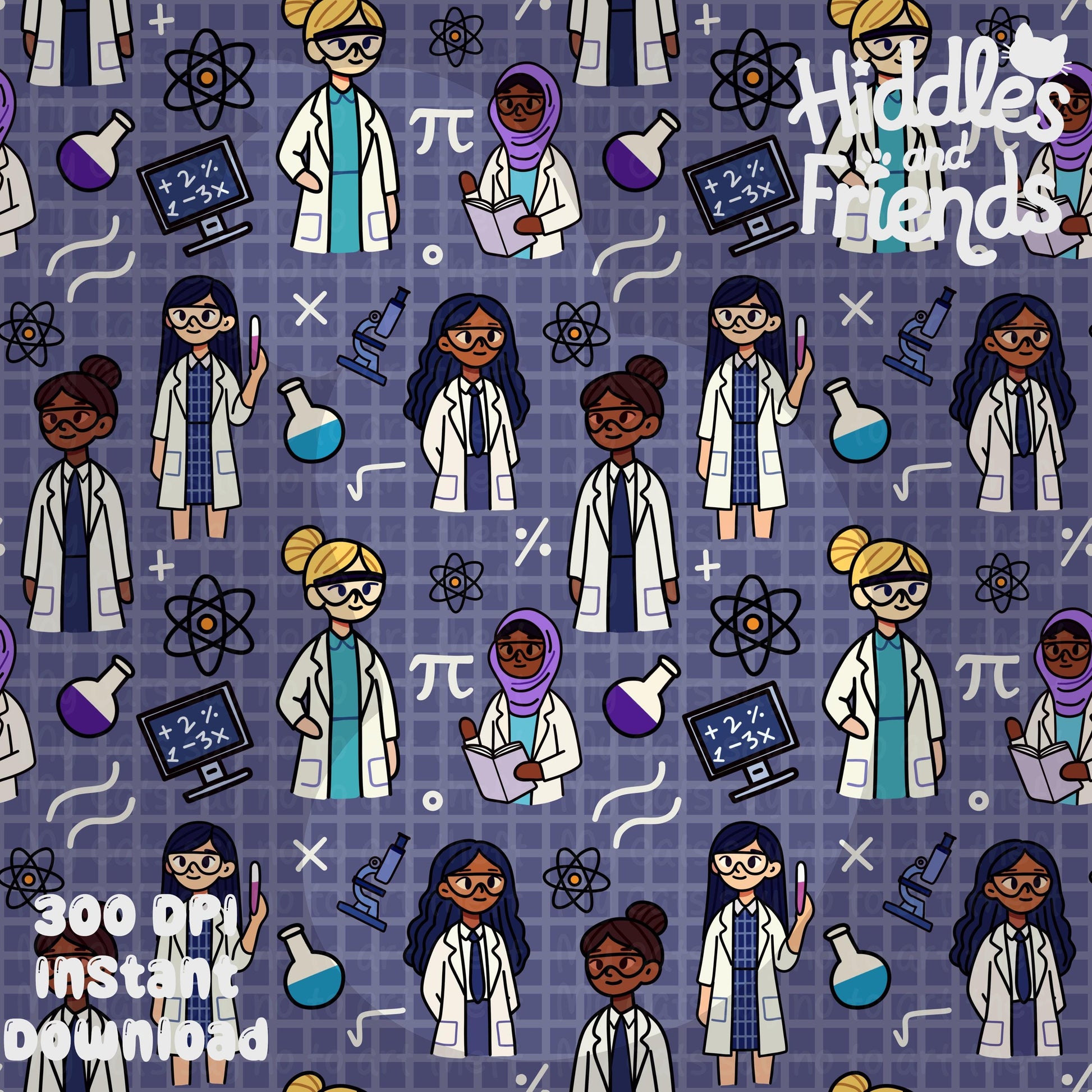 Women in STEM Digital Pattern - Science Lab Seamless File